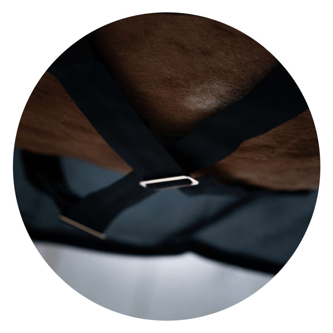 La technologie Recuptex est sans danger puisqu’elle utilise les champs magnétiques naturels du cheval. Elle peut également être utilisée pour soulager les raideurs et douleurs de la nuque grâce au couvre cou amovible. Il existe également des stables boots pour une action sur les membres de votre cheval.