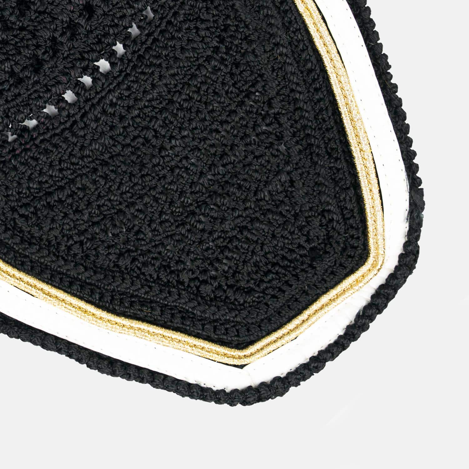 - Le tapis est composé de deux épaisseurs de mousse différentes, et d'un tissu en nid d'abeille au contact de la peau du cheval pour une meilleure évacuation de la transpiration.