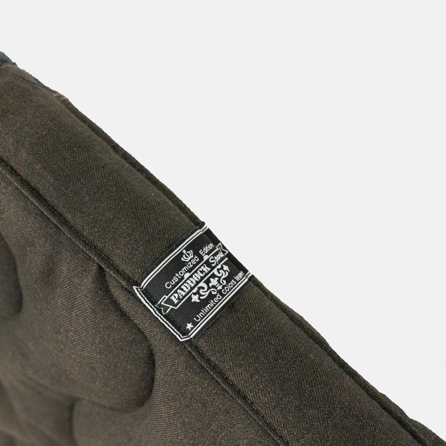 - Le logo Paddock Sports est toujours brodé sur le côté gauche du tapis, assorti aux coloris des galons.