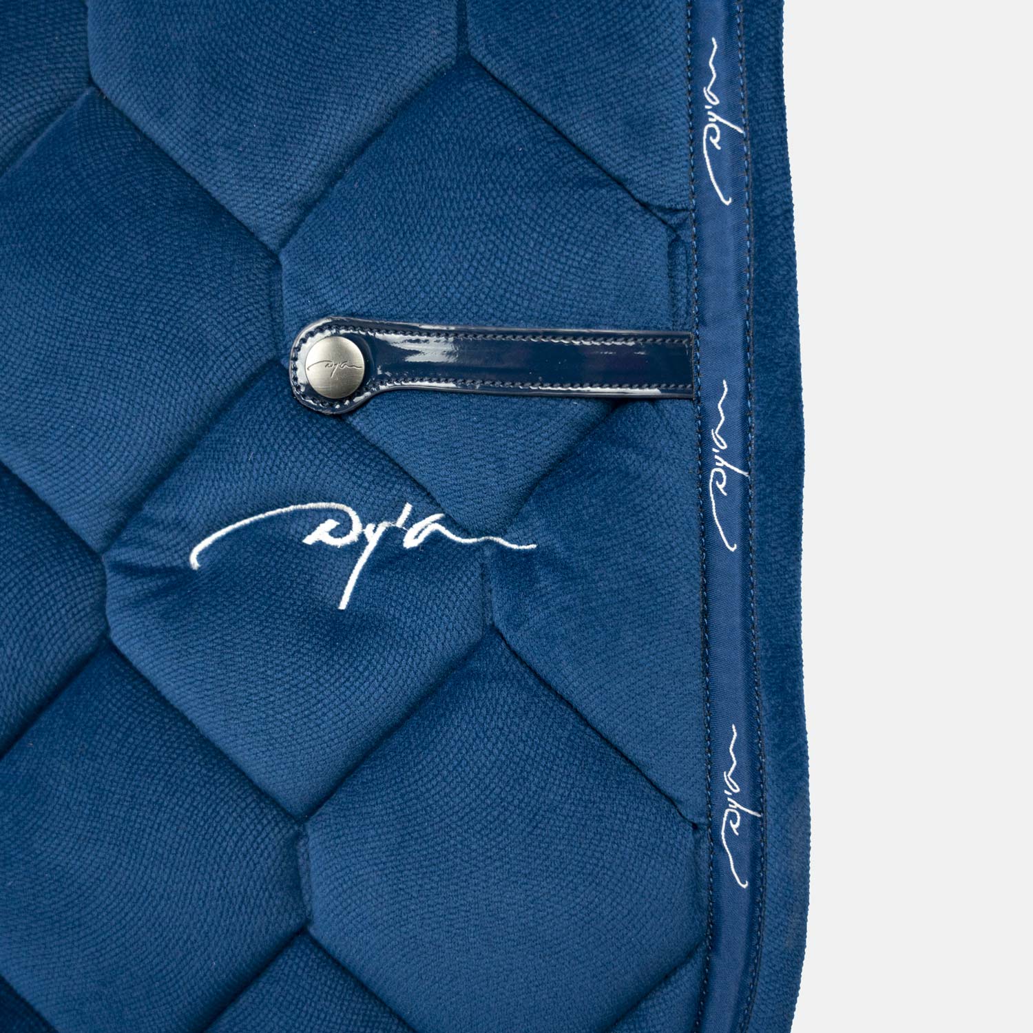 - Le logo Dy'on se retrouve sous cette lanière ainsi qu'au niveau du garrot et le long du tapis pour apporter de l'élégance et de la finesse.