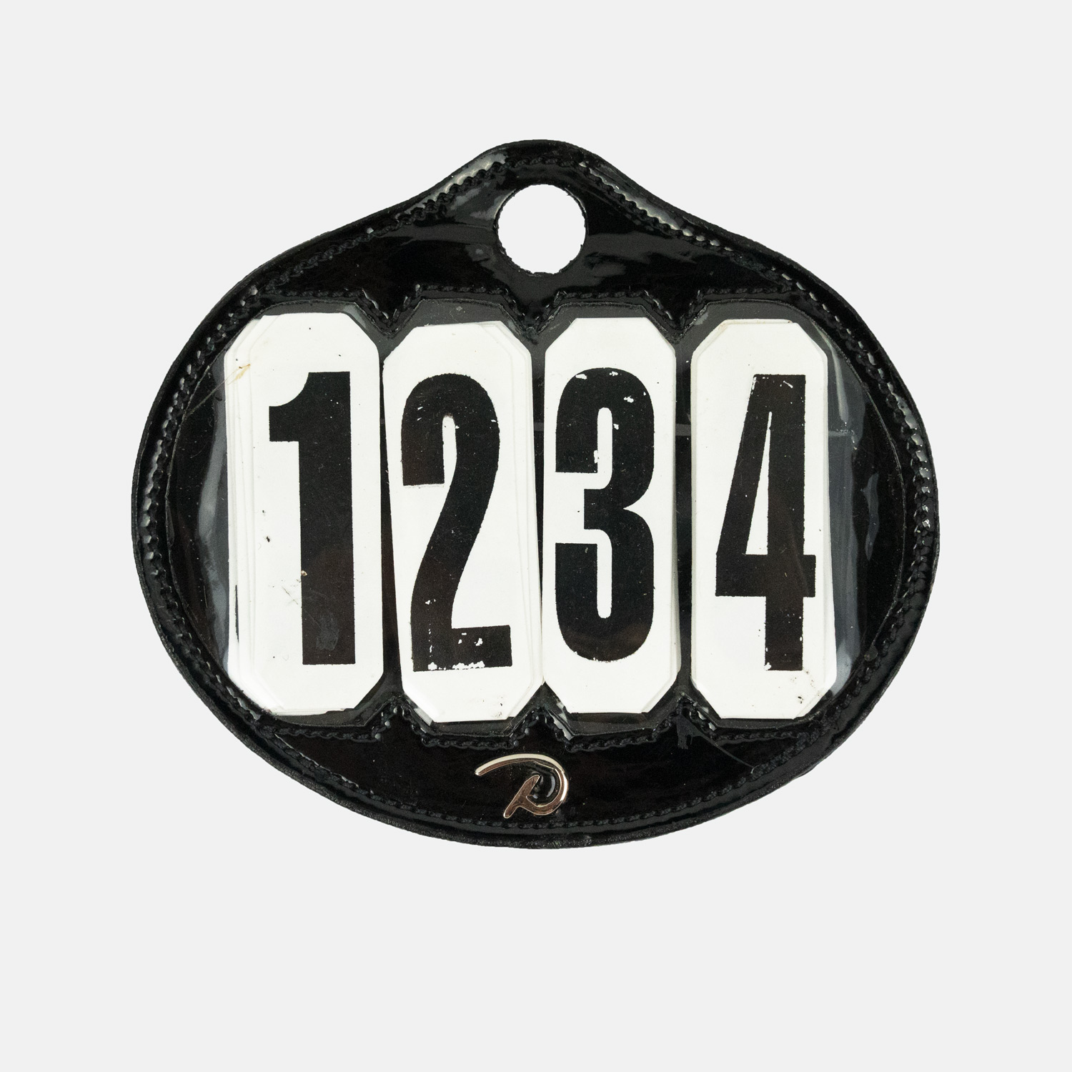 - Il possède sur le côté gauche une attache en cuir (lanière) pour vous permettre d'accrocher votre porte numéro à l'aide d'un bouton à pression.